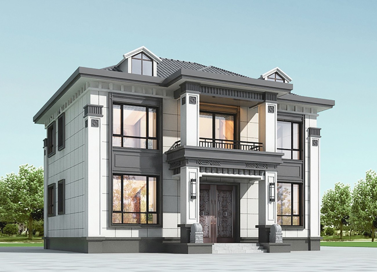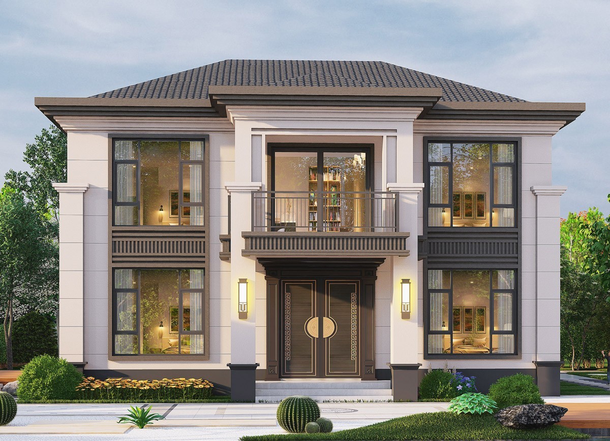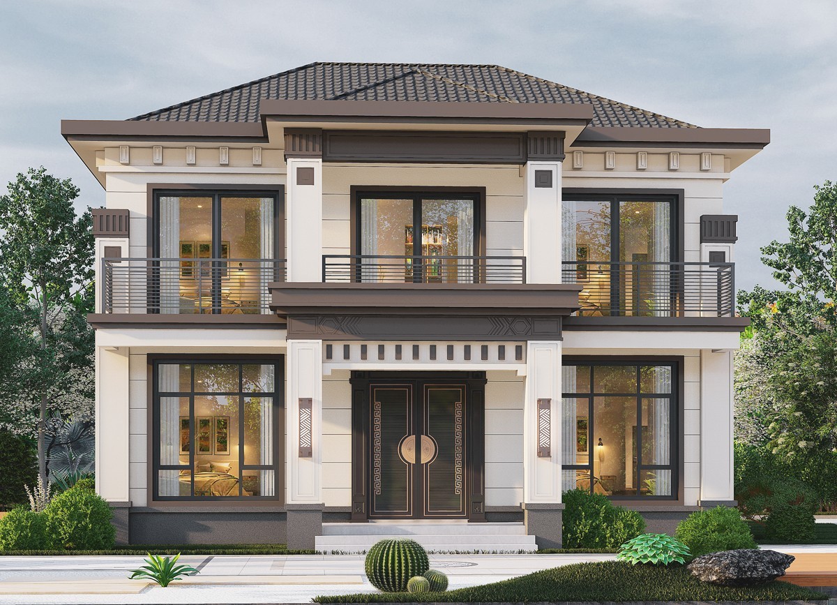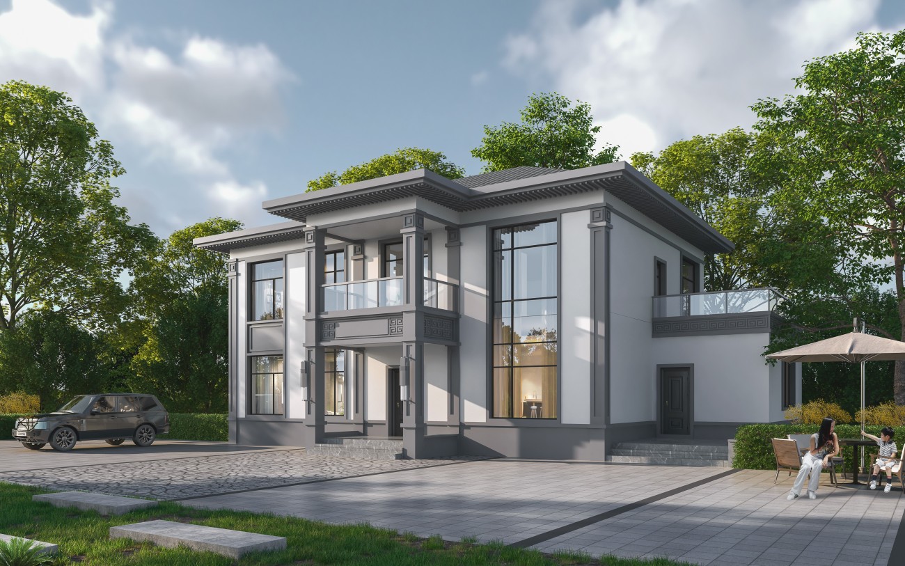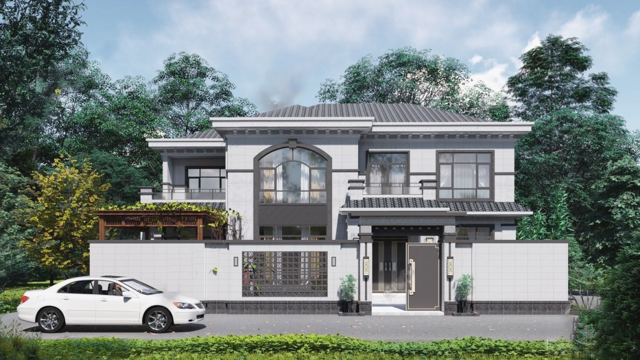 广东005 两层新中式(11.36x11.76米)-【易设计】